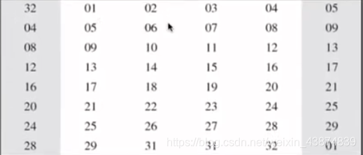在DES每一轮中,56位(64位移去8的倍数)密钥进行如下表所示排列: